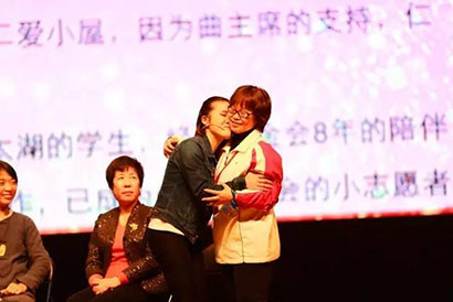 “孩子,你好好改造,我这里有仁爱的志愿者陪伴,你放心。”