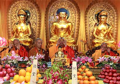 三师升座(图片来源:南海佛教,摄影:顿诚、顿宏、黄文)