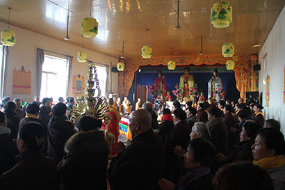 2016年12月15日,河北省衡水市武强县大华严禅寺大雄宝殿内,香云缭绕,梵音微妙,八角坛场庄严殊胜,四众弟子威仪整肃。